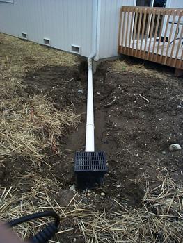 Installing a tight-line downspout drain system will direct roof runoff away from your property. This is especially important if the presently installed downspouts discharge into a yard that is flat or only sloping very gradually away from your home. Homes that originally had footing drains that have become clogged over time, and are now unable to properly handle both normal ground water and the roof runoff, will benefit from a downspout system.
